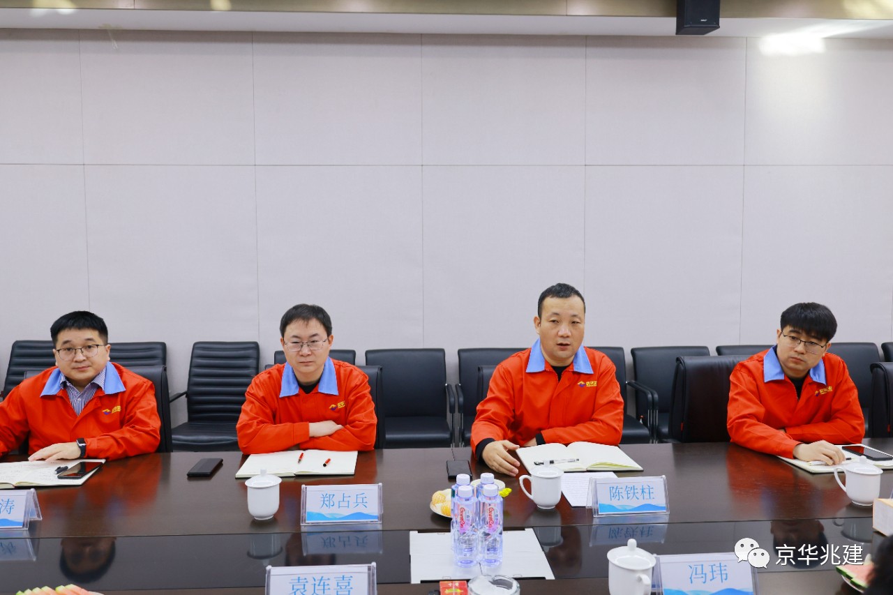 11月9日,江蘇國強集團副總裁、國強興晟公司總經理馮瑋,國強集團副總裁袁連喜等一行領導赴河北兆建參觀,并與京華兆建總經理陳鐵柱等領導就深化合作事宜進行了深度交流。